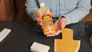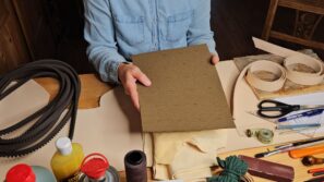 Potrebuješ: lepidlo, štetec, prípadne riedidlo, gumové kladivo, ak máš svorky, igelitový obrus, savé noviny, fľašku na lepenie podšívky, fén