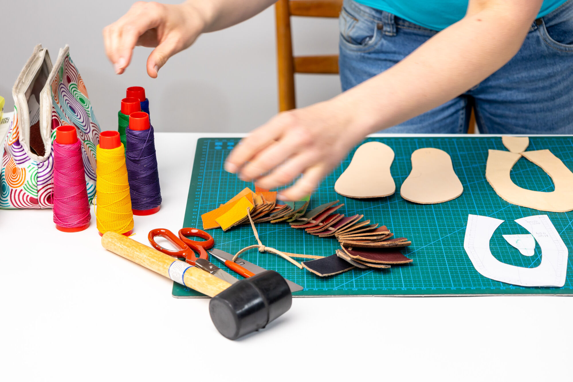 We´ll show you simple sandals, ballerinas, and lace-up shoes that even beginners can manage. I will briefly introduce you to the step-by-step process of hand-sewing shoes.